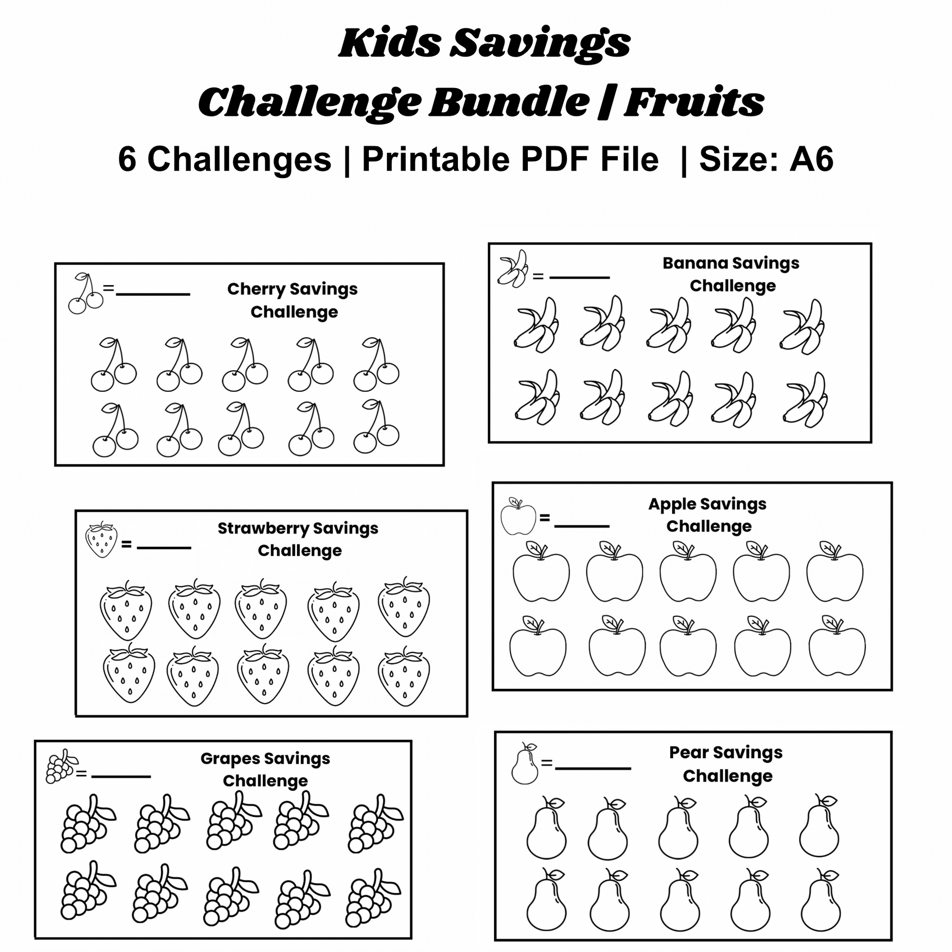 Kids Savings Challenge Bundle | Fruits | Printable | A6 size